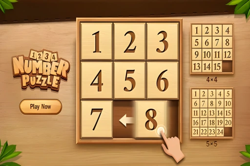 Challenge your number arranging skills in Number Sort, a classic sliding game where you must arrange numbers in order of magnitude as quickly as possible in grid puzzles of various sizes.